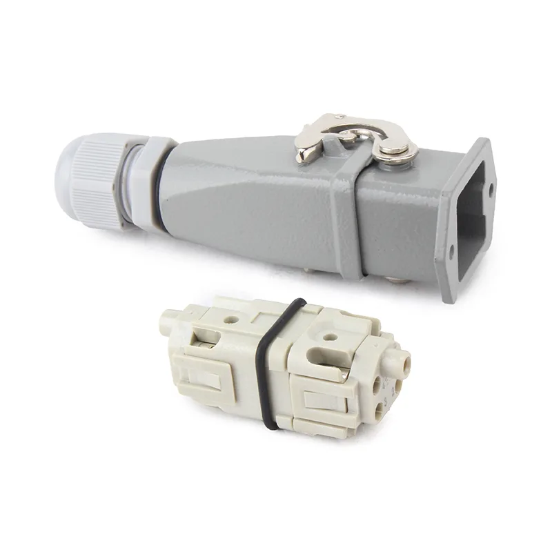 Gama złączy HA o dużej wytrzymałości jest używana do połączeń przewodów o małych rozmiarach. Do wyboru są 3+1P, 4+1P, 10P i 16P. Można go dopasować do obudów z wejściem od góry i obudową z wejściem z boku.