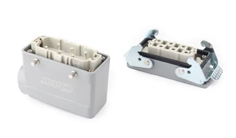 CHTARmoże zapewnić pełną gamę złączy o dużej wytrzymałości w obudowie. Dostępne są obudowy pasujące do złączy szeregowych HA, HE, HD, HEE i HDD i tak dalej. Pracują również z różnymi pinami, takimi jak 3, 4, 5, 6, 10, 16, 24, 32 i 48 i tak dalej. Fabryka może dostarczyć połączenia w innym kierunku przewodu.