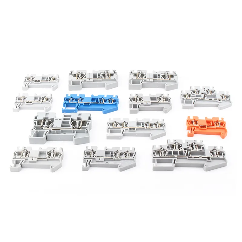 Sprężynowe listwy zaciskowe na szynę Din ST2.5 QUATTRO to elektryczne urządzenia łączące, zwykle montowane na szynach w szafach sterowniczych lub sprzęcie w celu szybkiego okablowania i konserwacji. Listwy zaciskowe są zwykle wyposażone w materiały izolacyjne i fizyczne struktury izolacyjne, aby zapobiec zwarciom, porażeniom elektrycznym lub luźnym okablowaniu, zwiększając w ten sposób bezpieczeństwo systemu.