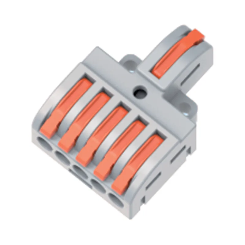 Szybkozłącza do łączenia przewodów typu T z jednym wejściem i wieloma wyjściami są produkowane przy użyciu importowanego materiału PC, który jest zgodny ze standardami UL94 V0. Metalowe elementy składają się z przewodzących płytek wykonanych z miedzi klasy T2 i sprężyn wykonanych ze stali S301, które zapewniają wyjątkową przewodność elektryczną.